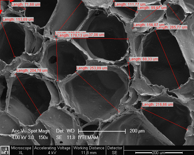 Again as a result of measurements by İYTE MAM, it has been detected that the size of the air cells is 1/10 of the tip of a needle. |